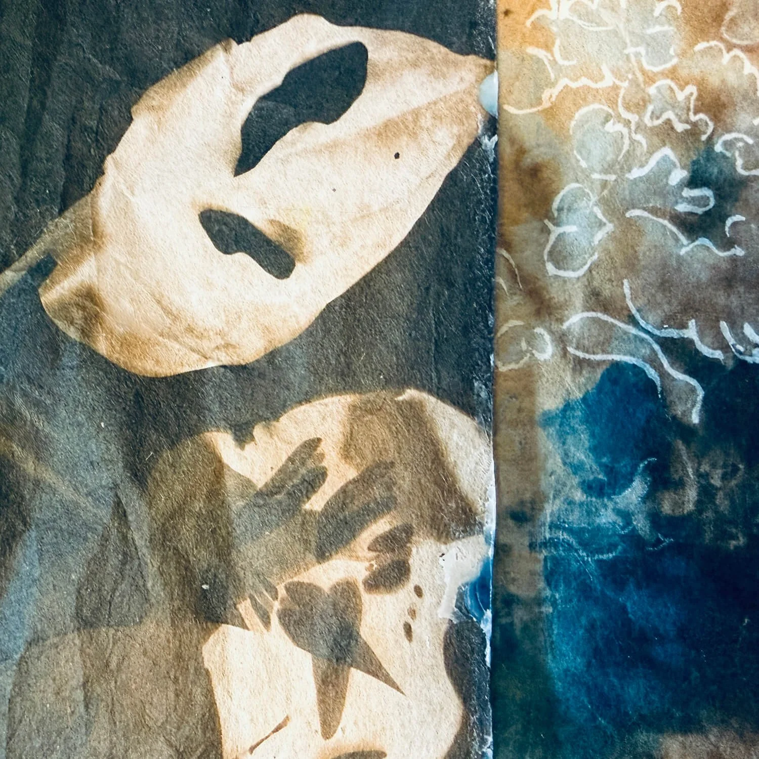 Cyanotypes come in many beautiful shades of blue. But you may wish to bring a little more color into these prints. By using natural dyes and pigments, you can expand your color range. This course covers cyanotype prep, bleaching, and toning techniques with materials as varied as tea, matcha, and local plant materials. These same techniques can be applied to any natural fibers. Use these materials as a base for collage encaustic works.
